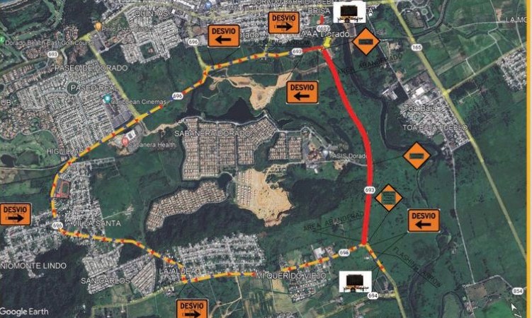 Se realizará el cierre de la PR-693 en la intersección con la PR 695 y se desviará el tránsito en ambas direcciones por la PR-695 hasta la intersección con la PR-696, permitiendo el paso solo al tránsito local para los residentes de la urbanización Sabanera hasta su entrada.