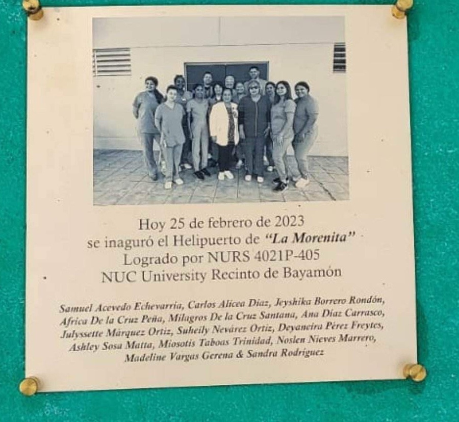 Los estudiantes de enfermería del curso NURS 4021 de National University College inauguraron el sábado el helipuerto del sector la morenita en Bayamón.