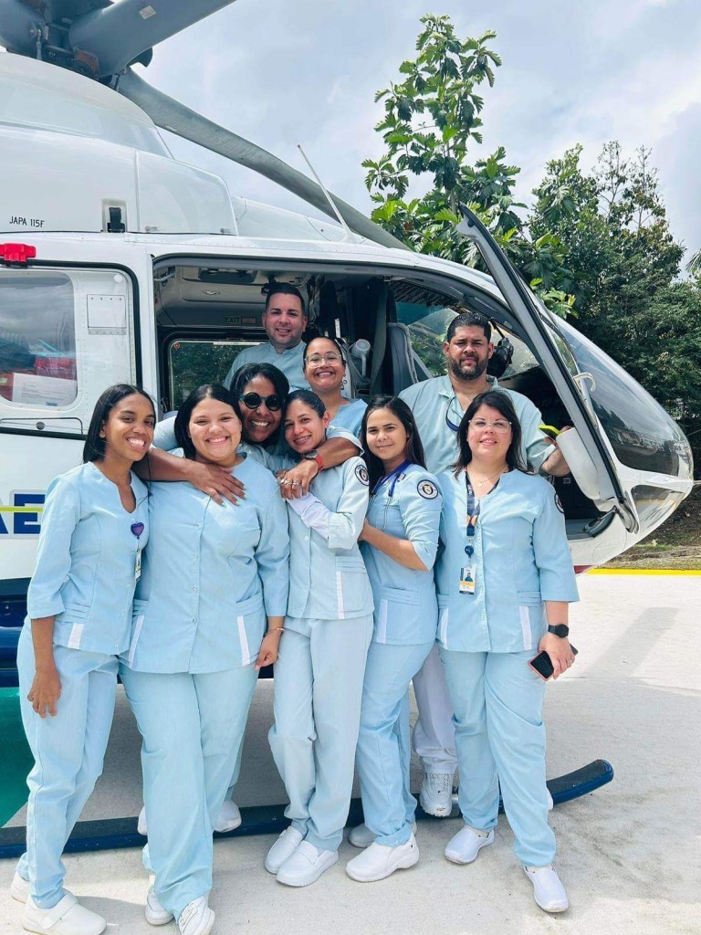 Con el aterrizaje de una ambulancia aérea de AMED, los estudiantes del curso “Intervenciones de enfermería con familia y comunidad” de NUC Recinto de Bayamón lograron su objetivo de brindarles acceso de emergencia a la comunidad. Es el primer aterrizaje de una ambulancia aérea en este sector rural de Bayamón.