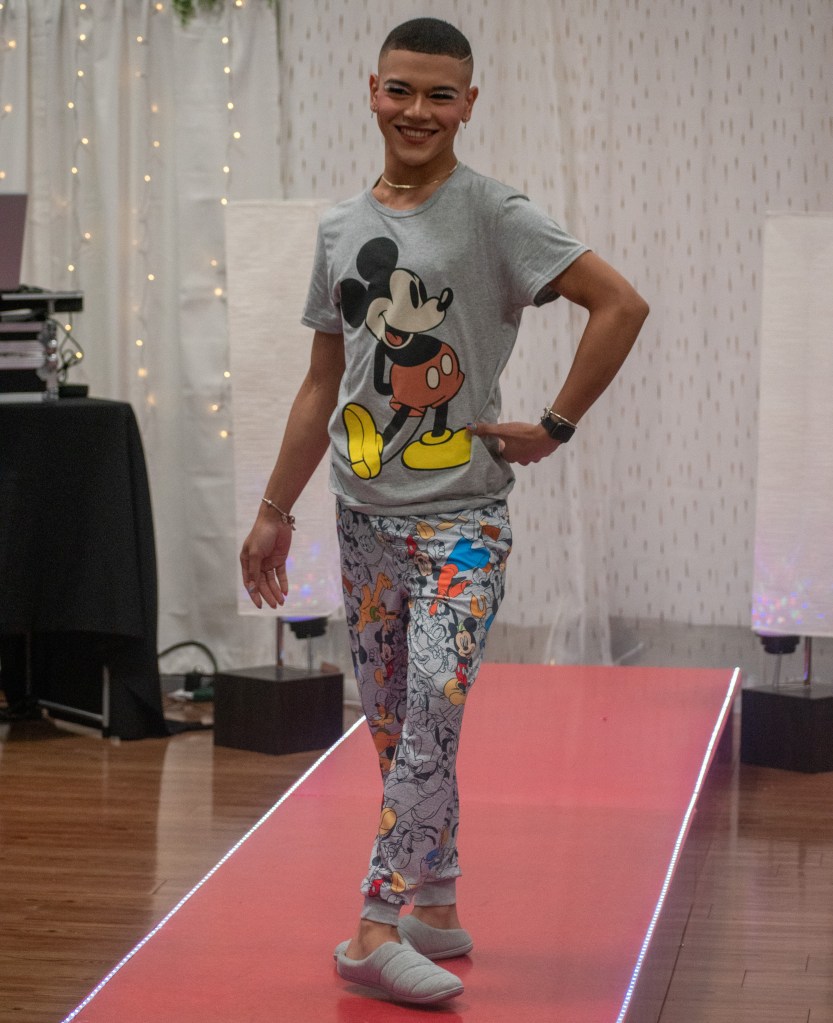 En el desfile hecho en el departamento de damas de la tienda, participaron empleados y familiares. Algunos con experiencia modelando. El espectáculo empezó con un baile hecho por “Angeliz” seguido del desfile por los modelos, quienes en su primera ronda modelaron piyamas de la marca Wondernation y ropa de dormir de “licencia” (marcas de franquicias como Disney).