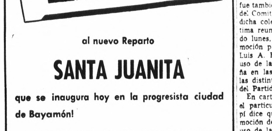 En mayo de 1961, había suficientes residentes organizados bajo la “Cooperativa Cívica de Santa Juanita”. Luis R. Viera era el presidente y Justino Oquendo, el vicepresidente. Esta cooperativa celebró una asamblea general para discutir las exenciones contributivas.