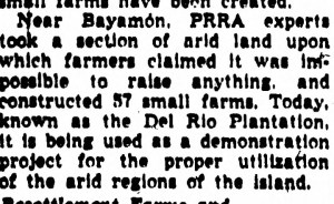 Un detallado de articulo del ano 1940 explica los beneficios de la PRRA sobre la finca rio plantation