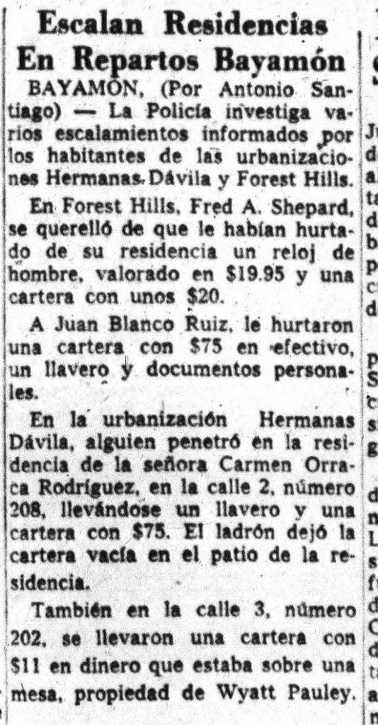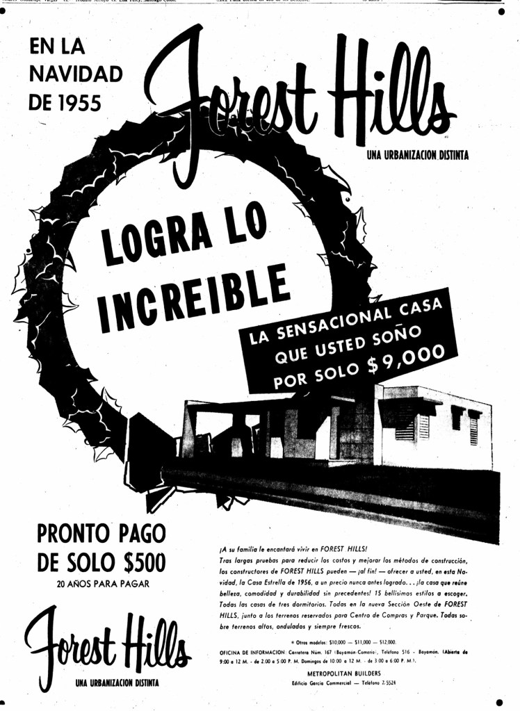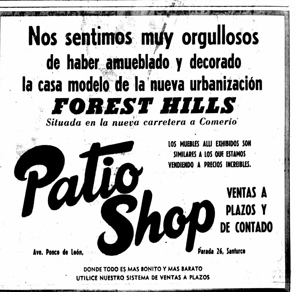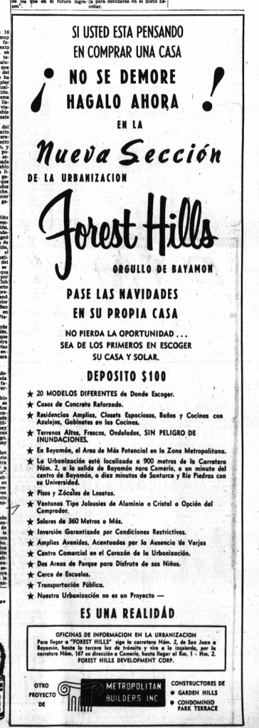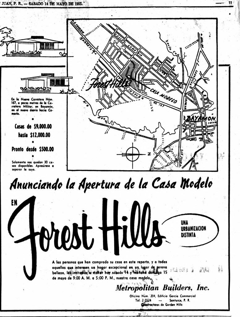 Para mayo de 1955, Forest Hills ya estaba habitada. Un clasificado en el periódico El Mundo anunciaba la venta de un «freezer» por parte de una residente.