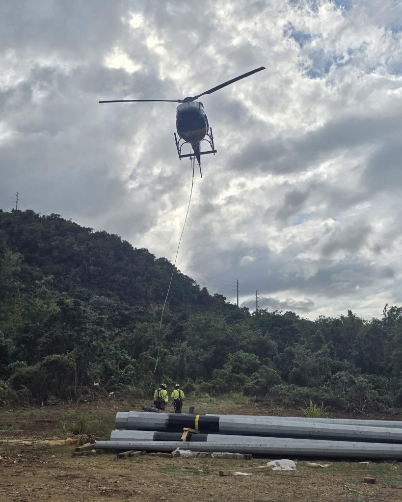 La compañía ha tenido que remplazar pararayos de las lineas y abrir paso entre el monte (Fotos del Facebook de LUMA)