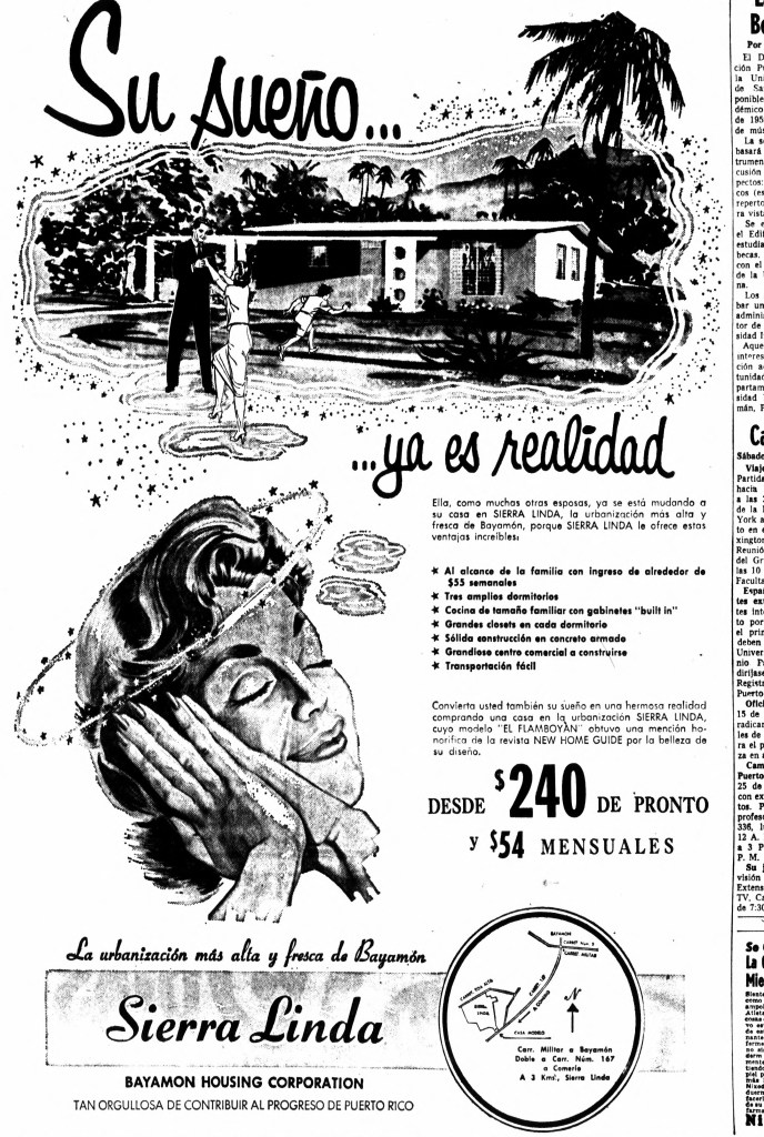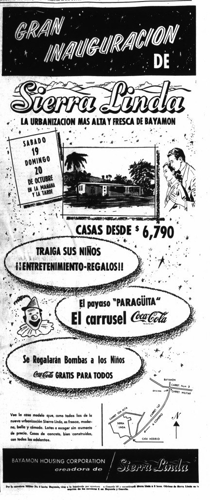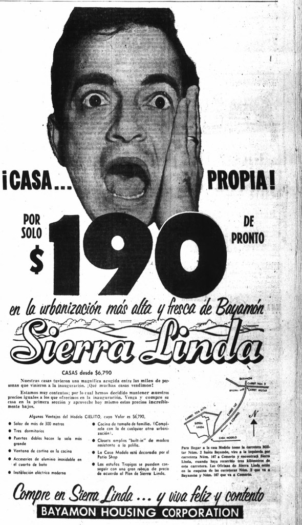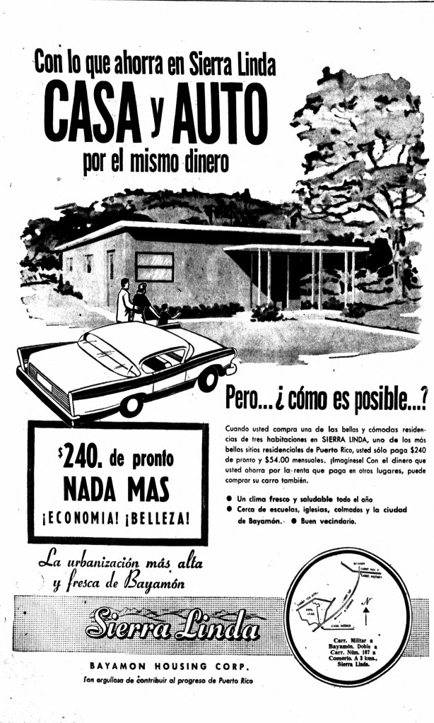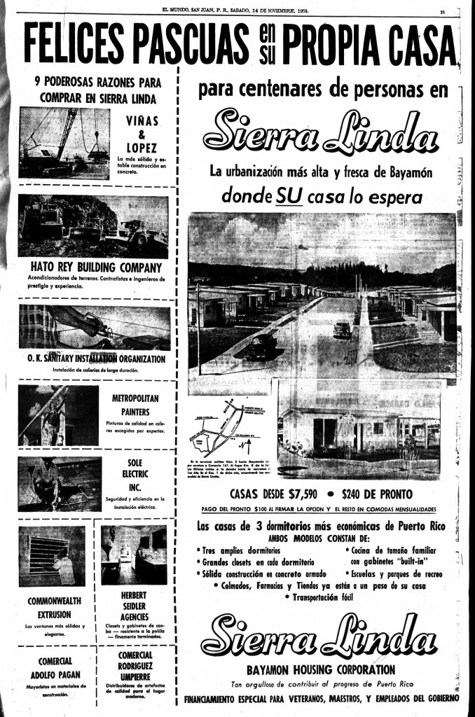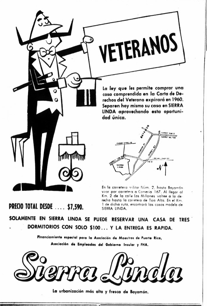Para 1959, la Bayamón Housing Corporation continuaba promocionando agresivamente la urbanización. Se destacaba la disponibilidad de financiamiento especial para maestros, veteranos y empleados del gobierno. La empresa también creaba sentido de urgencia en sus anuncios, advirtiendo que la ley que permitía a los veteranos comprar una casa bajo la Carta de Derechos del Veterano expiraba en 1960. Podían reservar su hogar con tan solo $100.