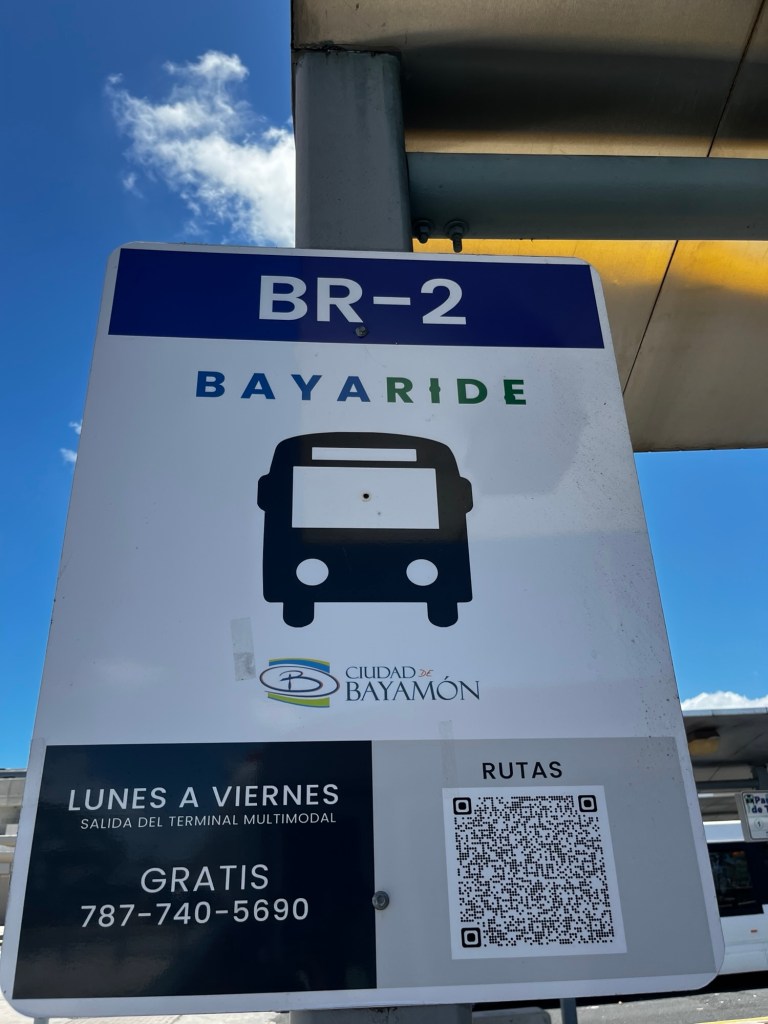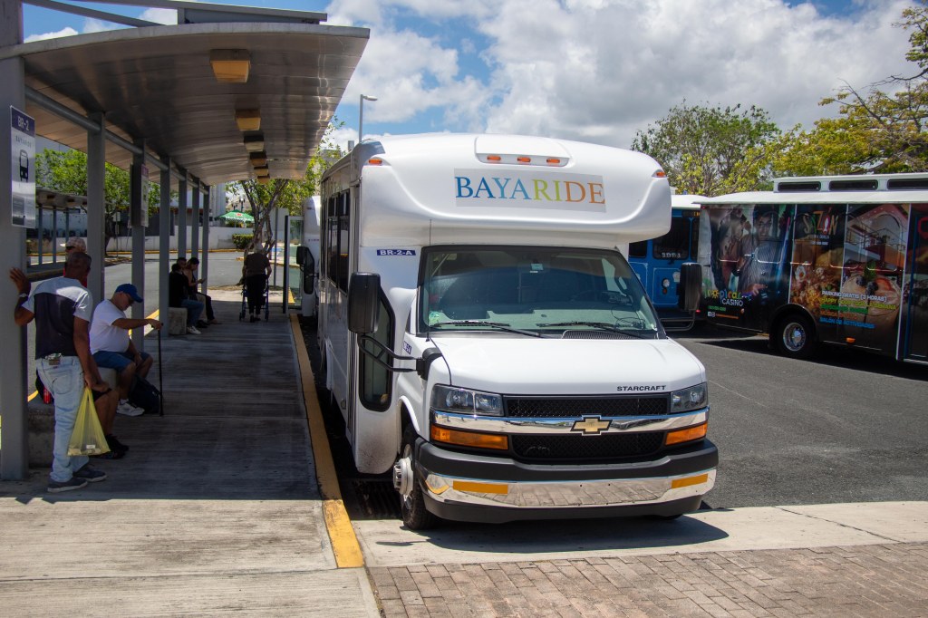 Eran las 11:55 de la mañana del lunes 14 de abril y ya la parada principal del sistema de transporte municipal BayaRide comenzaba a llenarse de pasajeros ansiosos por llegar a su destino. Para la BR-2 —ruta que conecta la estación del Tren Urbano con el sector La Aldea, atravesando zonas rurales de Bayamón— solo esperaban contándome cuatro personas. Entre ellas, parecían que conocían al chofer por su nombre, sus horarios, y rutinas.