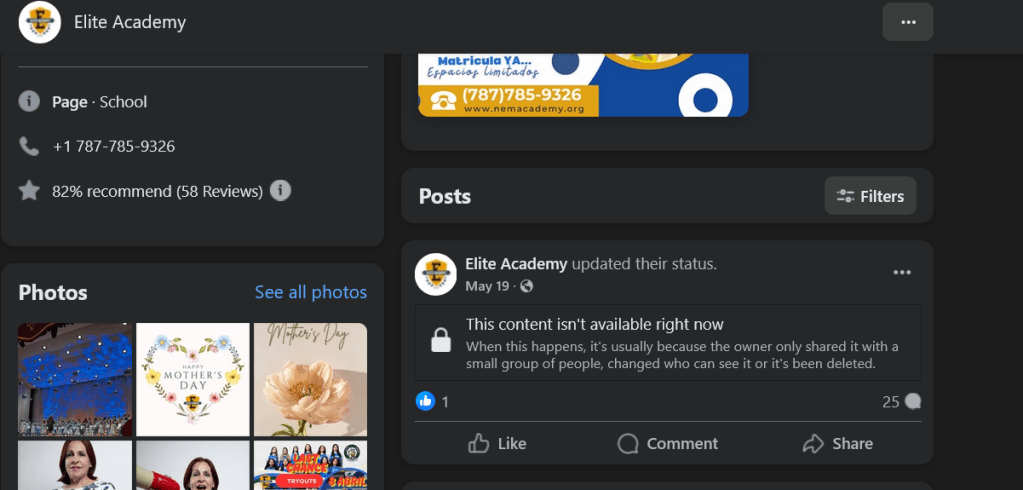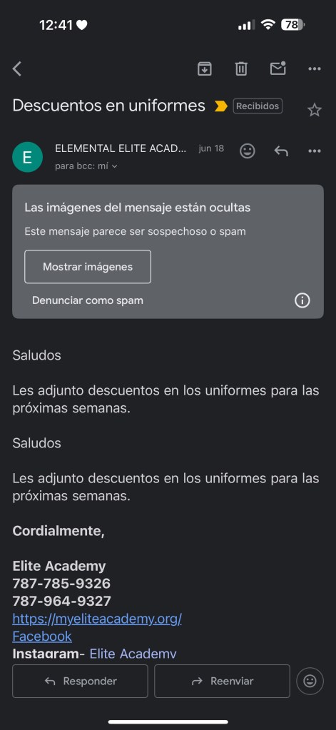 «Mis 3 hijos estaban en Élite desde que era Nema. La matrícula fue pagada el 10 de marzo de 2025 por $2,950, pago que se emitió por los 3. Uniformes comprados bajo el especial de uniforme que habían anunciado. Uno pertenecía al programa deportivo, uno le correspondía graduarse de 8vo el próximo año. Fuimos a las reuniones de clase y estaban planificando su primera actividad. Quedaron afectados emocionalmente con toda esta situación.» Dijo Keishla Ortiz a través de correo electrónico a Noticias de Bayamón. Keishla es una de las muchas madres y padres que han sido afectadas por este cierre. Elite Academy nunca dio indicios de que estaban atravesando problemas económicos. Típicamente, cuando un colegio privado cierra, lo avisa con meses de anticipación y no les emite aviso de facturas. Sin embargo, tan reciente como el 18 de junio de 2025, Elite estuvo solicitándole a los padres la documentación y compra de uniformes como en cualquier inicio de año académico.