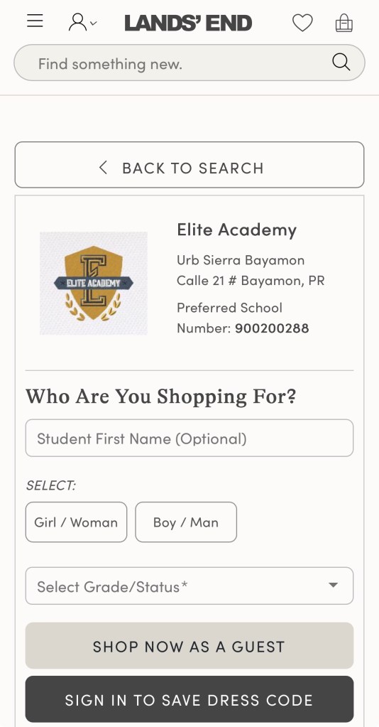 Jennifer Díaz pagó con anticipación la matrícula de su hija, quien solo llevaba un año estudiando en la Elite Academy. También ordenaron los uniformes cuál tienen que ser adquiridos a través del internet. Contrario a Puerto Rico, donde los padres pueden hacer Lay-Aways o estar exentos del impuesto a la venta en las ventas sin IVU, todo el que compré a través de Land’s End, el suplidor de uniformes de la academia, debe pagar el uniforme, el logo, impuesto, y cargos por envío.