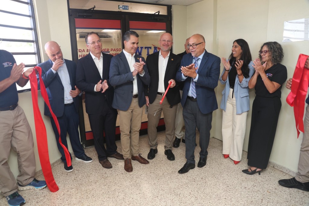 Representantes de la red de colaboración multisectorial del RAP de la construcción se reunieron en las facilidades de WTA en Arecibo para el tradicional corte de cinta que marcó el comienzo oficial del primer programa de aprendizaje registrado de la construcción impulsado por AGC-PR.  (Suministrada)