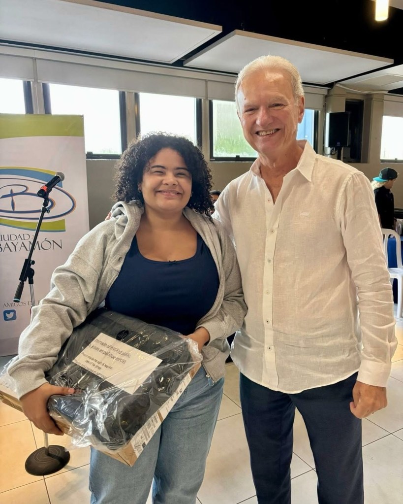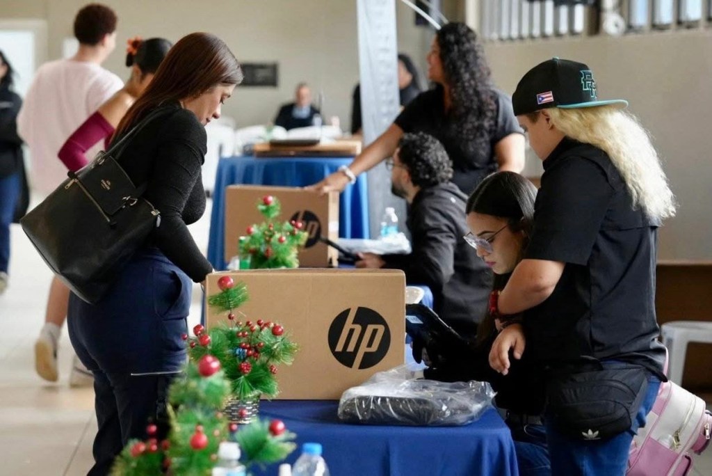 El alcalde de Bayamón, Ramón Luis Rivera Cruz, entregó hoy 125 computadoras portátiles a estudiantes de escuelas públicas del municipio con promedios generales de 3.50 a 4.00.