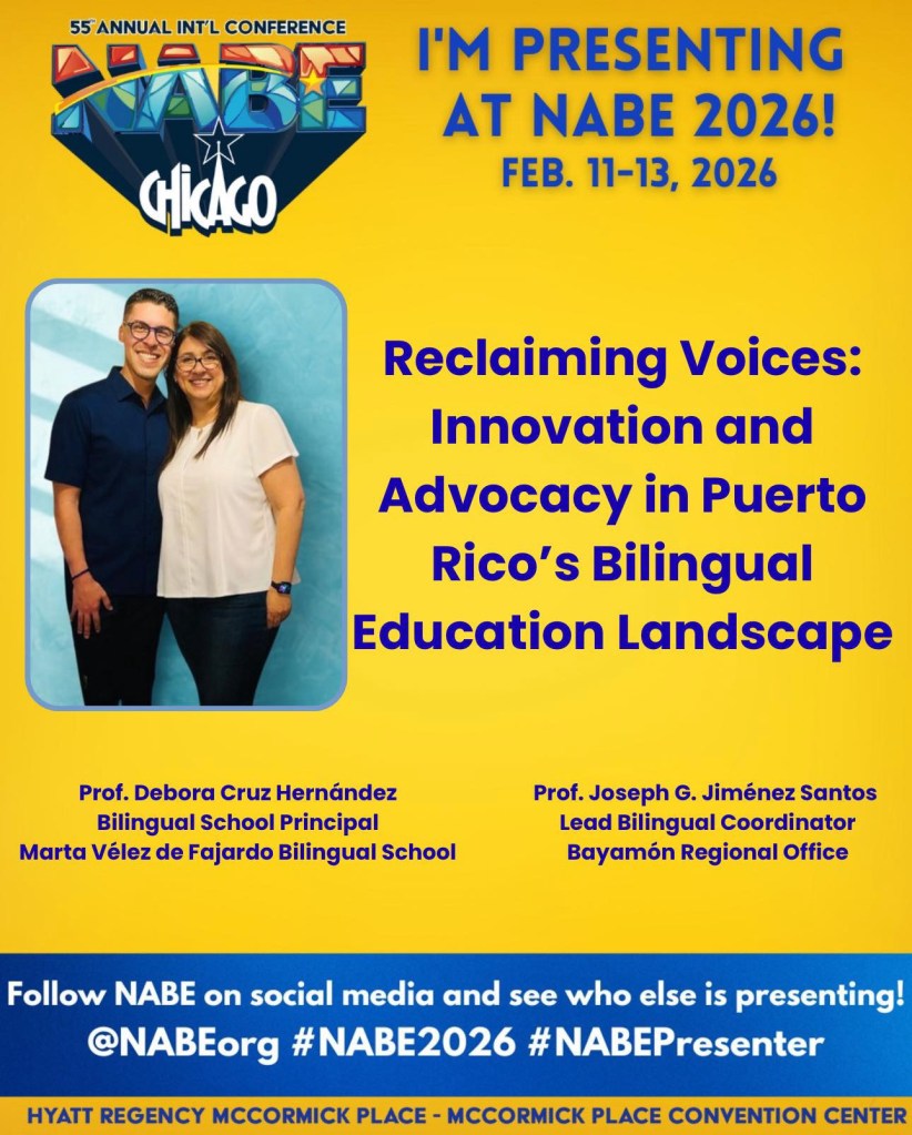 La directora escolar Débora Cruz Hernández y el coordinador bilingüe Joseph G. Jiménez Santos representarán a Puerto Rico en la 55.ª Conferencia Anual Internacional de la National Association for Bilingual Education (NABE), en Chicago.