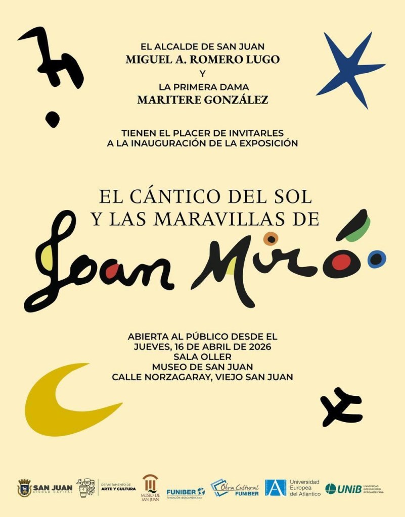 El alcalde de San Juan, Miguel Romero anunció la apertura de la exhibición El cántico del sol y las maravillas de Joan Miró en la Sala Oller del Museo de San Juan, la cual estará disponible al público a partir del jueves 16 de abril.