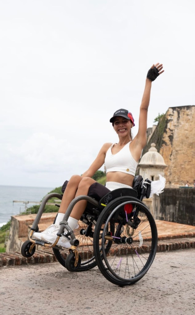 Melanie Valdés Reyes, residente de Puerto Rico, impulsa un proyecto para establecer un récord mundial Guinness de mayor cantidad de kilómetros recorridos en 12 horas continuas en una pista, utilizando una silla de ruedas de uso diario.