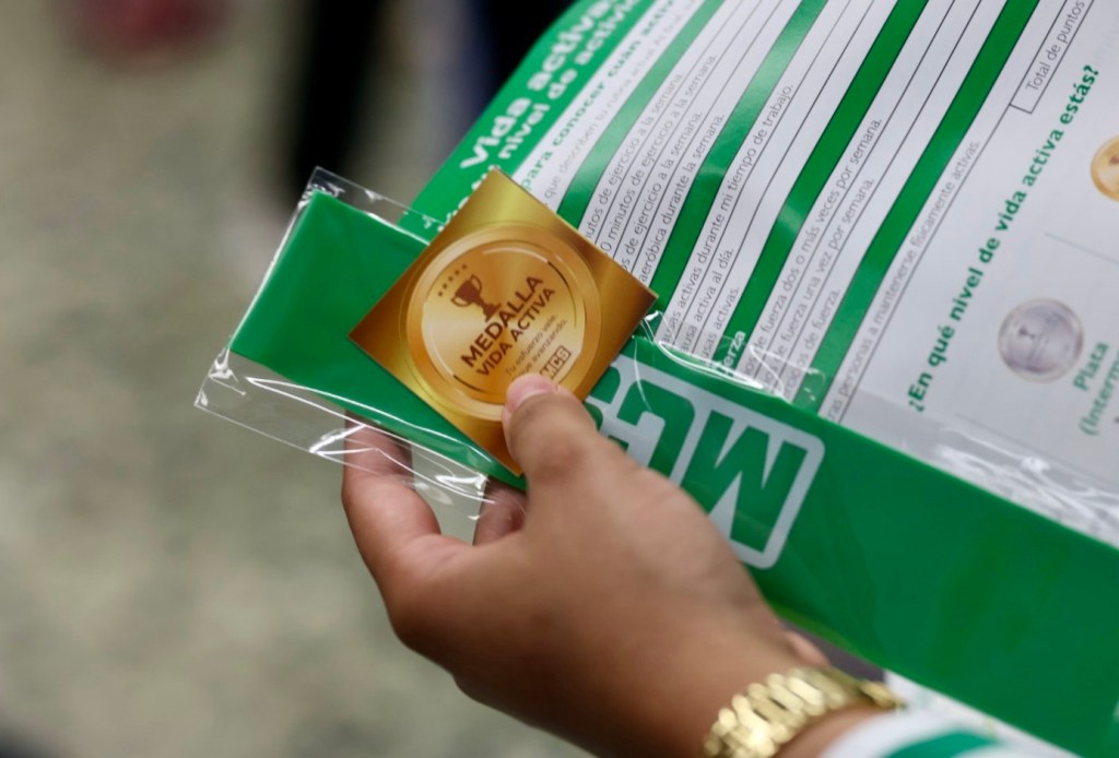 Como parte de la experiencia, los empleados recibieron bandas elásticas para ejercicios y participaron en una dinámica de evaluación de su nivel de actividad física, en la que obtuvieron medallas simbólicas.