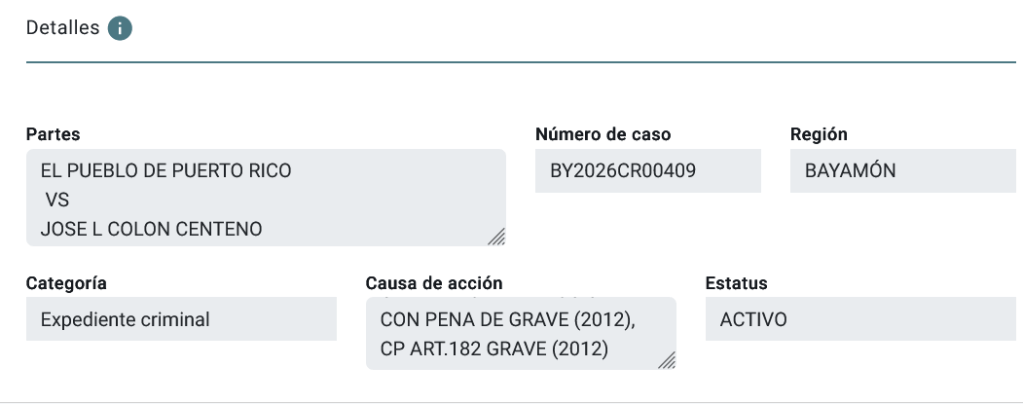 Las autoridades indicaron que, como resultado de la investigación, se procedió con la radicación de los cargos correspondientes contra el individuo. De acuerdo al portal de Poder Judicial, el caso es el BY2026CR00409 y enfrenta cargos por apropiación ilegal. (CP ART. 184.A MENOS GRAVE CON PENA DE GRAVE (2012), CP ART.182 GRAVE (2012))