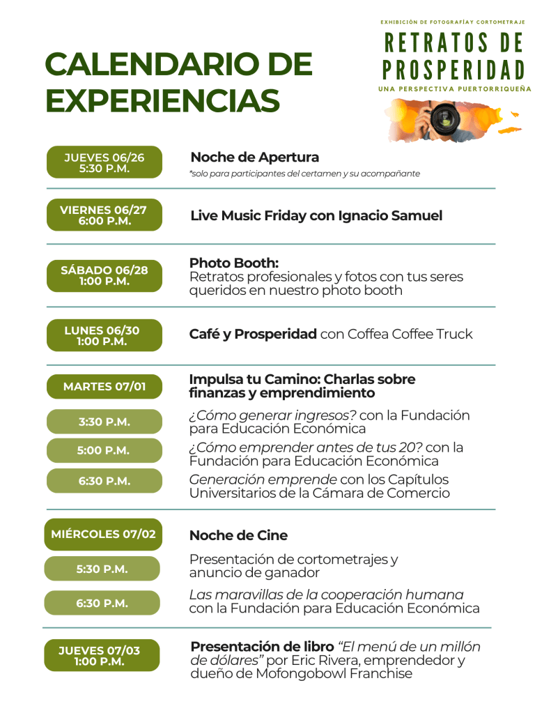 actividades culturales, Centro CRECE, cortometrajes puertorriquenos, educacion economica, educacion financiera, emprendedores puertorriquenos, emprendimiento en puerto rico, empresarios locales, exposicion fotografica, fotografia estudiantil, fundacion fee, juventud emprendedora, libre mercado, noticias de educacion, Plaza Las Américas, retratos de prosperidad -